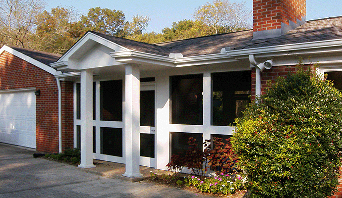A screened porch/side entry/garage connector for, and kitchen/dining renovation of a traditional ranch home.