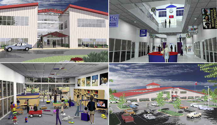 A schematic design for a prototypical concept to house several government offices under the same roof.